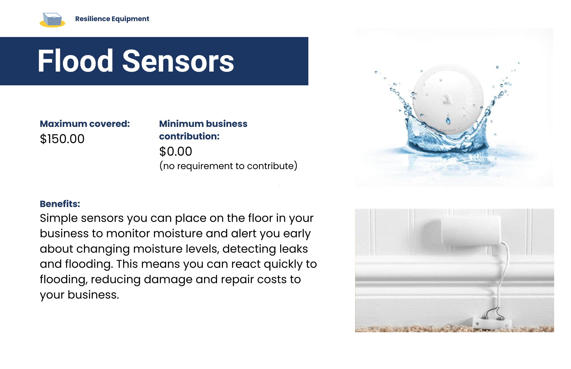 Resilience Equipment – Access to portable items like flood-proof storage, fans, and flood sensors.